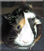 Dearest Nova, what an adorable little Guinea Pig you are! You are so pretty with that colorful soft-looking fur and the sweet face with those lovely dark eyes. And what a delightful story you have to tell! You live in a luxurious two-story home with your three girlfriends and soon-to-be boyfriend. You sit on your dear person's shoulder at the computer or on her/his chest to watch Animal Planet on TV. You get a variety of vegetables and fresh fruit each day. You and your dear person and piggie friends all love each other very much, don't you. What a wonderful love-filled home you share!