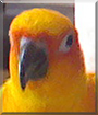 Dearest Bird, what a beautiful bird you are! You are such a gorgeous Sun Conure, and you have the most delightful personality, too. Sometimes you think you're a dog, sometimes you take long bird baths in the sink, sometimes you copy what you hear someone say. You are best at is being your dear person's best friend, cuddling with her/him by falling asleep on his/her shoulder. You both love each other very much, don't you. What a wonderful love-filled home you share!