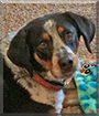 Dearest Jake, you are adorable! What a beautiful Hound Dog mix doggie you are! We are so glad you got saved on that golf course, and we are so sorry litter mate was not. The story of how you were fostered and then came together with your permanent family is heartwarming. You have such a delightful personality! You have lots of energy and make your dear people smile with your antics. You and they and your sister Dallas all love each other very much, don't you. What a wonderful love-filled home you share!