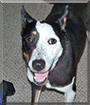 What a gorgeous BC x GSD girl you are, Pennie, and what a welcome sight your big, warm smile is on this cold and snowy day! I just love your multi-colored coat and your markings, and how precious and patriotic you look, all decked out those stars and stripes bandana! (I do believe I see a kitty friend in the background of that photo!:)) No surprise to learn how heads turn at the very sight of you! You sure a looker, and every bit as beautiful on the inside!