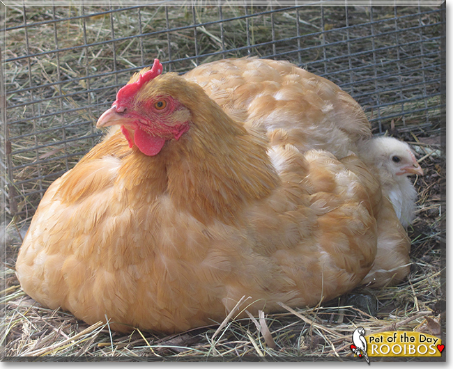 Great thanks to your human mommy for stepping in after the sad passing of your( very beautiful!) hen mommy, welcoming you into her big, happy, feathered family (which will soon include sister Sugar-Star)! You're just too special for words, Rooibus, one in a million, and so very deserving of your big day of honor! Your family is one lucky lot, having you in their lives!