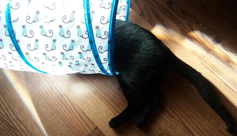 Mindy and Clover, performing their magic trick, the "Disembodied cat head".:D