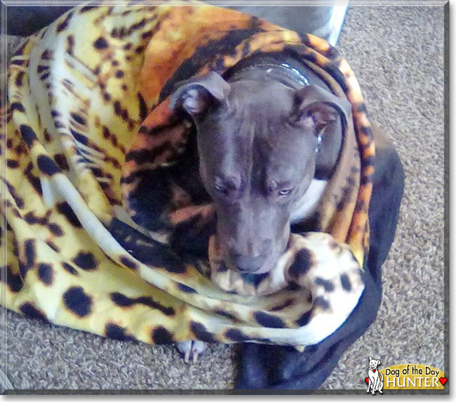 Thanks for starting my day off with a BIG smile, sweetheart! Meeting you, seeing all of your beyond heart-melting photo, has been a real treat! Hope you enjoy a very special day of celebration, playing fetch and tug o war, getting all cozy in your fleece blankie, cuddling with your human, being treated to all your heart desires and more! Lots of love, snuggles and slobbery smooches to you, beautiful Hunter, our very special and most deserving Dog of the Day, EVERY day!:love::love::love: