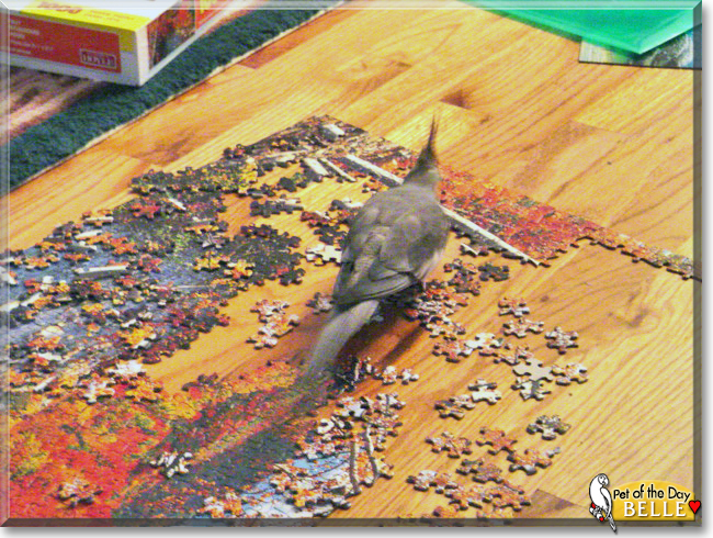 Thanks for the BIG smiles, sweetheart! Meeting you has been a real treat! Hope you enjoy a very special Pet of the Day celebration...flying about the house, sharing fun time with your human (jigsaw puzzles, hehe), munching on popcorn, being loved and pampered to pieces! Lots of love, cuddles and *kisses* to you, beautiful Belle, our very special and most deserving Pet of the Day, EVERY day!:love::love::love: