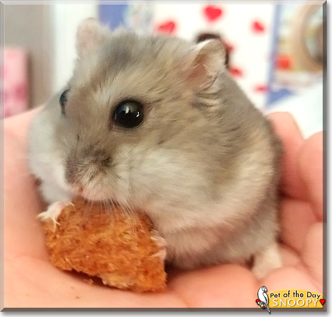 Be still my heart! What an adorable, most precious Winter White Dwarf hammie you are, Snoopy! Your cuteness quotient is off the charts!:)