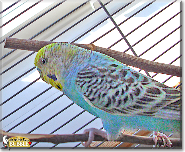 What a lucky human is yours, having a best feathered family member as beautiful, as sweet and fun loving as you! You're a gem of a boy, Bubble, a treasure, and so very deserving of your big day of honor!