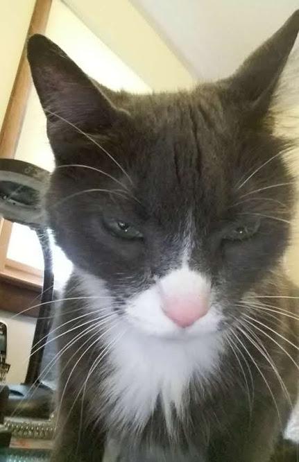 Instead of typing her memoirs, Miss Kitty finally took a selfie. The first ever cat selfie in the house of cats.