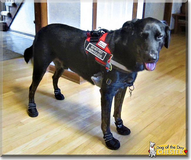 Good morning, Chester! Happy Dog of the Day to you, from all in this lifelong Lab loving home! What a treat, seeing your gorgeous, sleek and shiny, smiling self up on my Dog of the Day page this morning; reading your proud mom Katey's love filled tribute to her best friend and devoted companion, her healer and comforter, her furry soulmate; learning of the amazing bond you and she share! And of course it's always an extra special treat when we get to hear from the honoree himself!:)
