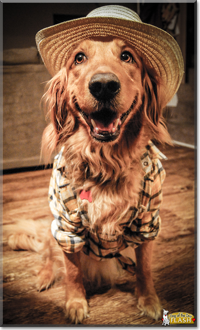 What a gorgeous Golden boy you are, Flash, and clearly the consummate country boy, relishing the outdoors, the fresh air and sunshine, swimming and rolling in mud as you do! And no doggie does a cowboy hat better than you! Those long, golden locks of yours, your shiny coat are simply stunning, Flash; like spun gold! And your sweet as sugar face could melt the coldest and hardest of hearts! In true Golden style, you're not only gorgeous in looks, but as loving and golden hearted, as cuddly and affectionate as they come!