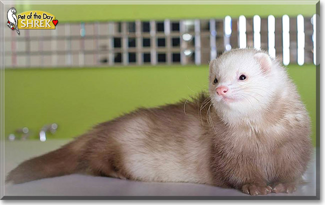 Congratulations, Shrek, on being POTD! You are a CUTIE! What an adorable face! We're so happy you have such a wonderful human family to love you! Sending best wishes for long, happy, healthy, fun, safe lives to you and your fellow ferrets and humans! :love: http://www.guineapigsrfun.net