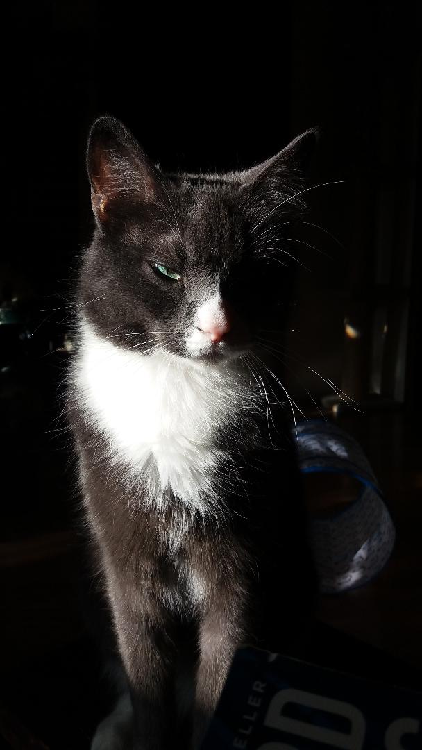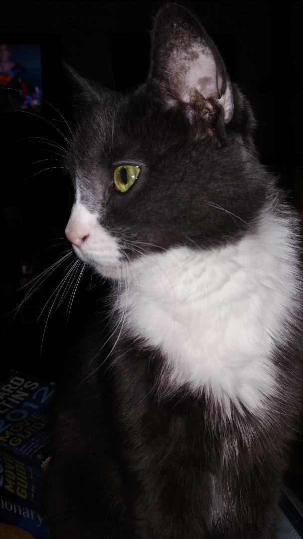 Poor Monroe is a mess right now with his allergies, covered in sores:(. At the right angle and dim lighting though, he looks pretty good.:D