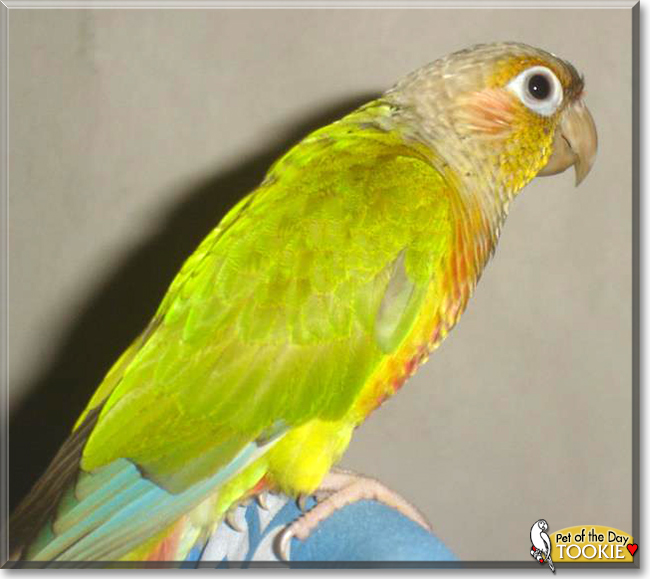 Congratulations, Tookie, on being POTD! You are GORGEOUS and BRILLIANT! (We :love: birds!) We are so glad you have such a wonderful human family to love you and care for you! :) We are sending you ALL best wishes and lots of love, Sweetie! :love: http://www.guineapigsrfun.net/275827546
