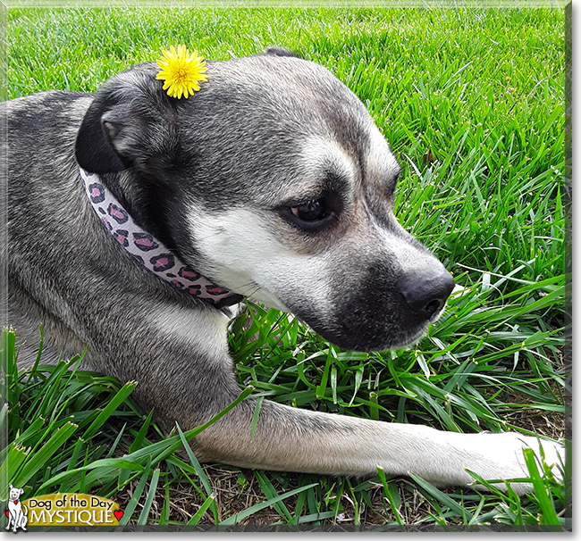 What a gorgeous Husky x Boxer girl you are, Mystique, and being the charismatic, alluring, magical pup that you are, so perfectly named! How lucky your furever family is, having a joyful and fun loving, well mannered and smart, cuddly and cute as can be best furry family member in you, sweetheart! In looks and in personality, in body and heart, you couldn't be more perfect if you tried!