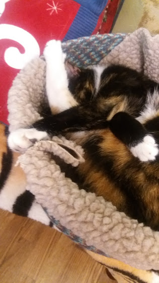 The other day, I found Mindy like this, fast asleep in her bed.:eek: