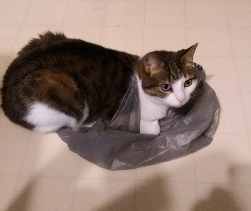 Olive got literally caught in her shopping bag, a sad end to an otherwise great day at the mall.:D