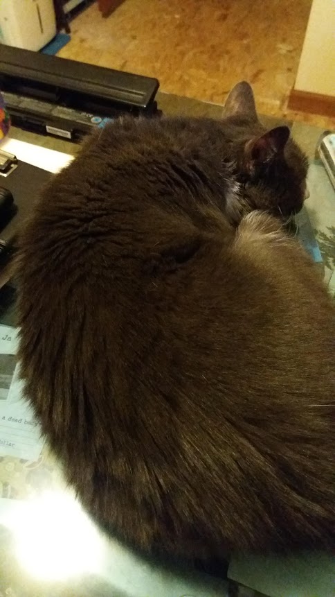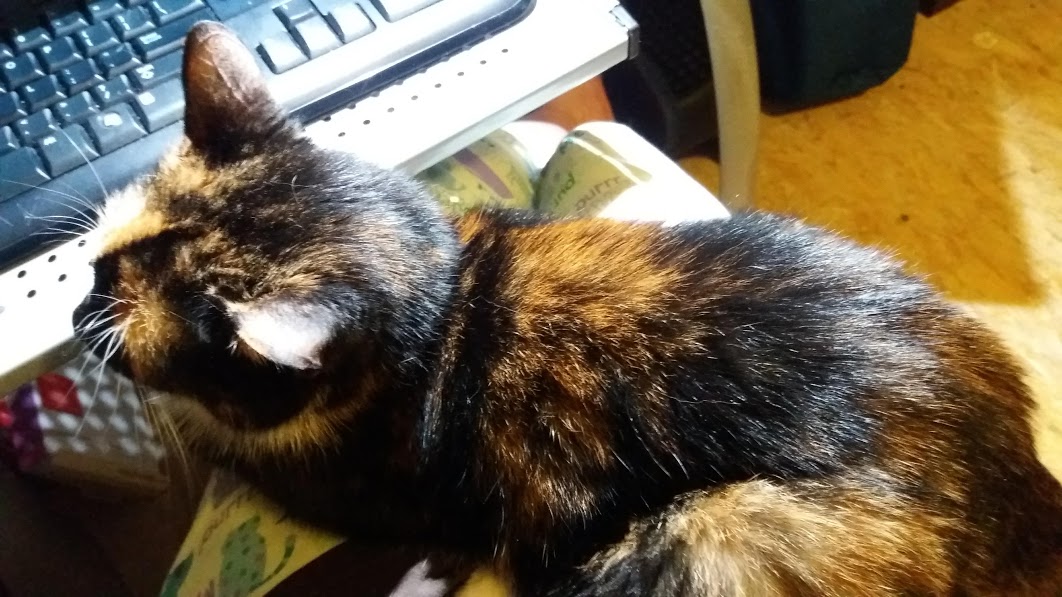 Mindy, on the other hand, is lazy right in front of the keyboard: