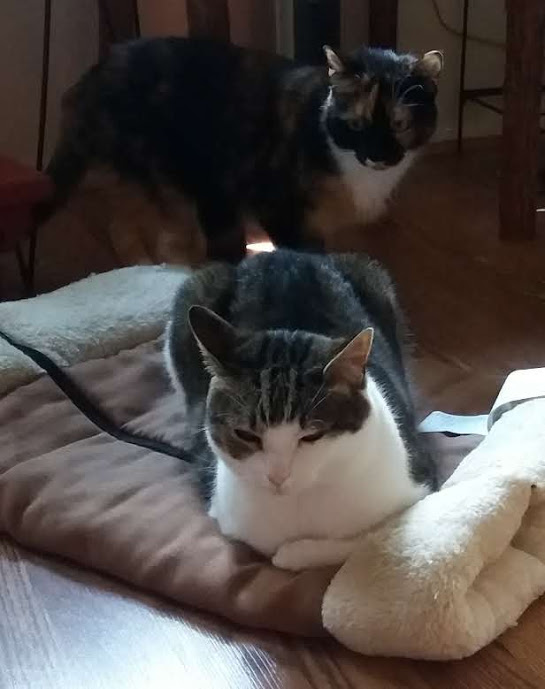 Olive is one of them. I bet that she was feeling Mindy's eyes on the back of her head. Eventually, she got uncomfortable and she jumped and ran, followed by Mindy.