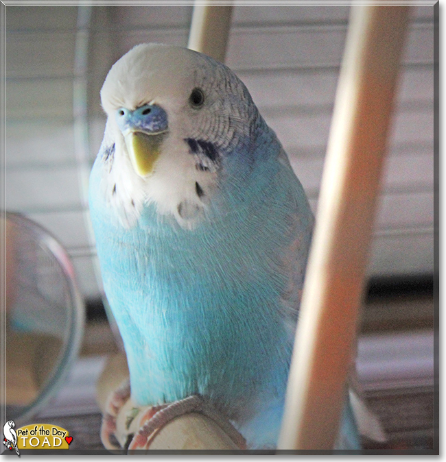 What a breathtakingly beautiful blue Budige boy you are, Toad; truly heaven sent; your human's dream of having a birdie of her/his own come true! I have to believe it was more than mere chance, serendipity, that led you to your human that fateful day! No doubt it was destined to be that you and she/he would be as one, and the rest is happy history! How blessed your human is, having a beautiful, joyful, gentle and loving best feathered friend and family member in you, Toad! In looks and in heart, you couldn't be more special if you tried!