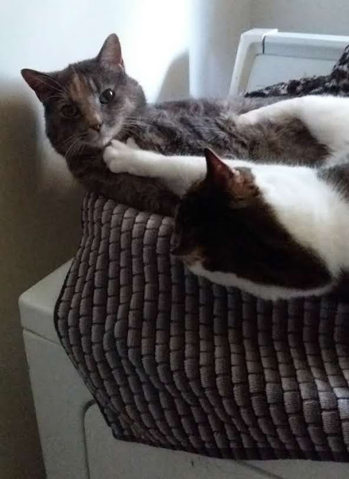 Sweet Olive! What beautiful markings you have on your white fur! You are a totally adoring sister, and Miss Kitty tolerates your devotion! :love: :love: