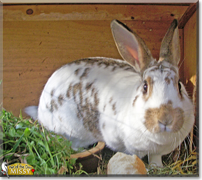 Congratulations, Missy, on being POTD! You are gorgeous and adorable! We are so happy you have found a loving forever home but we hope you will live inside your human's home all the time. Living in a hutch outside is too dangerous (weather, predators, poisons) for pet rabbits. Sending :love: and best wishes for a long, happy, healthy, fun, safe life, Sweetie! :love: http://www.guineapigsrfun.net