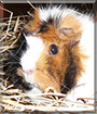 What a beautiful girl you are, Bella! Your trademark rosette/swirls, your coat of many colors, are simply gorgepous! And oh, what a sweet and gentle, most loving piggy you are! You truly are one much loved girl, and understandably so; you're irresistible! And how lucky are you, having not only a devoted human spoiling your rotten, but a best furry friend as well, a fellow wheeker to play and cuddle with! Life is good!:cool: Your mom/dad is one lucky soul, having a beautiful best furry friend in you, Bella! You're just as special as they come, beautiful inside and out, a treasure!!!