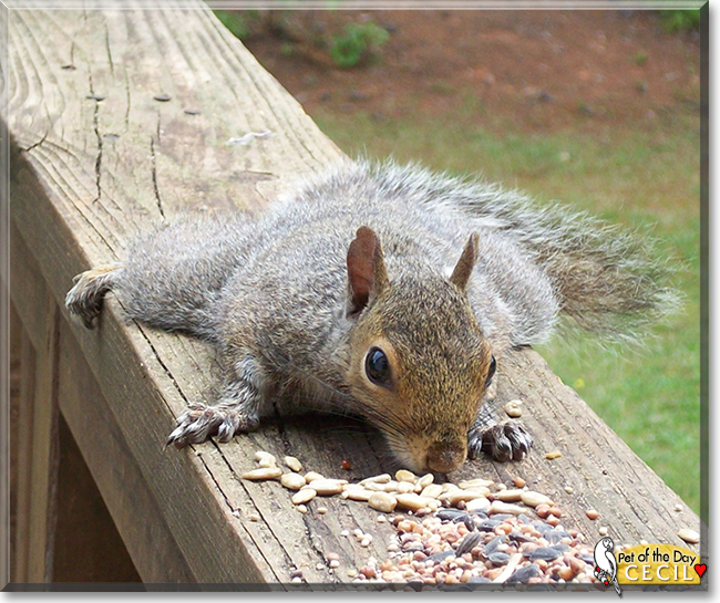 I would've never thought a squirrel who lives outdoors all the time could be so responsive, but he is. If he comes onto the rail of our deck, and I haven't yet sprinkled the bird/squirrel food, he will sit there and stare right at me through the glass in our back door! It's as if he's asking me where his food is! Other times, when he's eating, he will pause now and then to look up at me, as if he's thanking me. I'm thankful for Cecil and his buddies providing entertainment for me daily, although my kids think I'm a little "nuts"!! (pun intended - - ha ha!!).