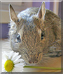 Dearest Chip, you are adorable! What an utterly precious Degu you are! You are so pretty, gazing out at me with those lovely big eyes in that sweet face. It's easy to see you're looking forward to nibbling on that flower! I don't think I've ever met a Degu before, and what a pleasure it is to meet you and learn a little about Chilean squirrels. You are your dear person's own little Romeo, and you even have your brother Moe there to double the fun! You and Moe and your dear person all love each other very much, don't you. What a wonderful love-filled home you share!