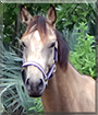 Dearest Dolche, you are absolutely gorgeous! What a beautiful young Quarter Horse/Thoroughbred cross you are! You have a delightful personality, and you are learning many tricks and routines with your dear person. You are the first horse to come to her/him in the pasture, and then you follow him/her around like a puppy. You two love each other very much, don't you. What a wonderful love-filled home you share!