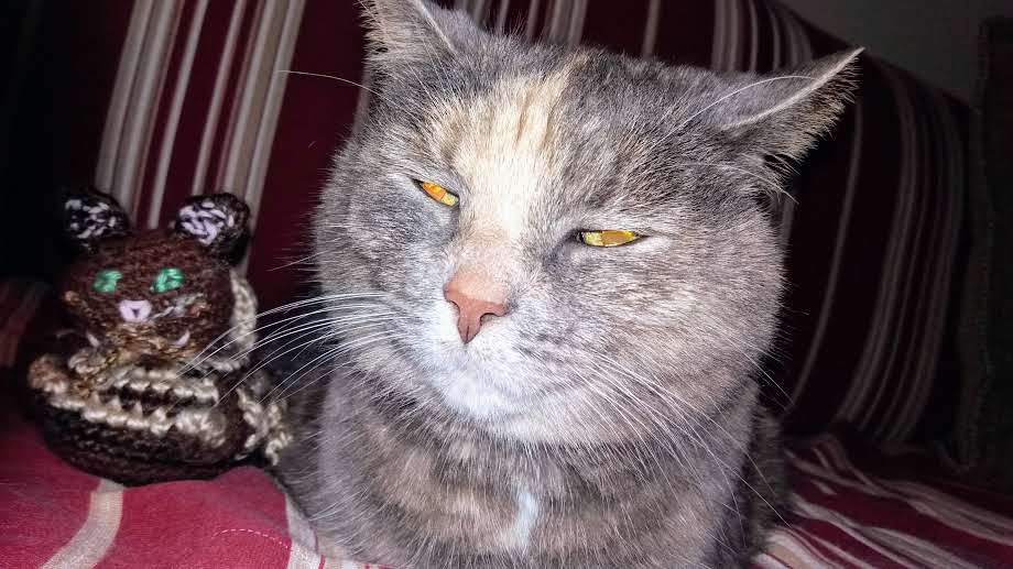 Dear Miss Kitty, you are very beautiful! I like your long whiskers and your colorful fur! Your mini-me is very cute, too! xoxo