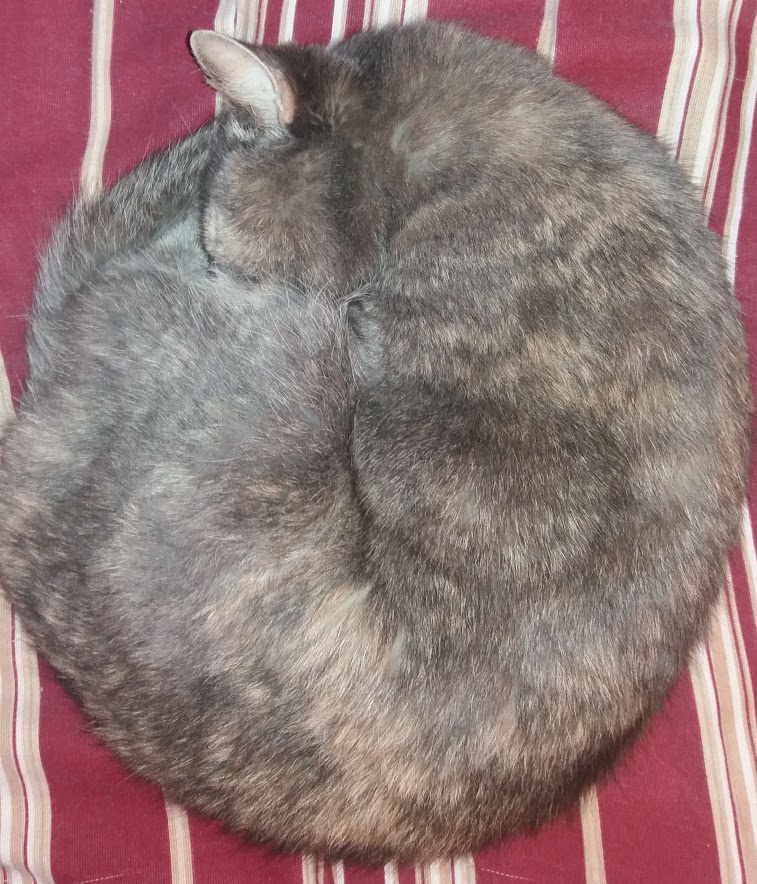 I have never seen Miss Kitty curled up like that, in a very tight circle. She stayed like this for at least an hour.