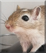 Dearest Aizen, you are adorable! What an absolutely precious gerbil you are, so cute in those great photos. You follow your dear person when you're walking around in the house, and you often try to climb into his/her hair! You live with your two siblings, Gin and Tousen, and you are the kindest. You've never bitten your person, like they sometimes do. You all love each other very much, don't you. What a wonderful love-filled home you share!