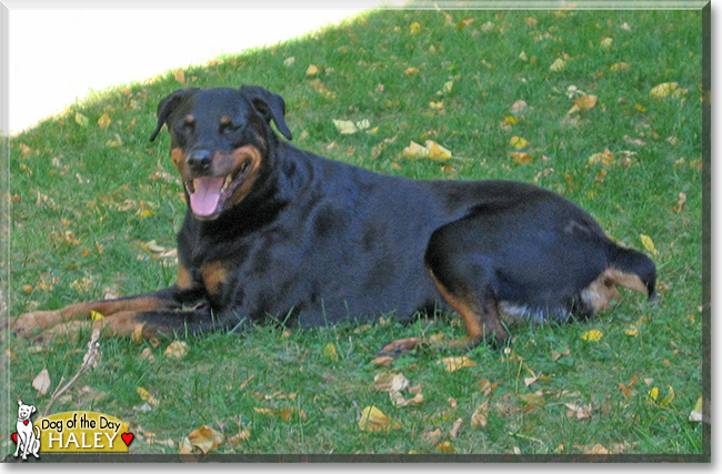 What a beautiful Rottwieler you are dear Haley. Congratulations on being Dog of the Day!