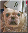 Congratulations on being crowned our New Year's Day honoree, sweetheart, and how VERY deserving you are! What an adorable, most precious Frenchie you are, beautiful inside and out, and dare I say (judging from your photo) quite the party boy to boot!:D Love that hat! hehe But as adorable in looks as you are, as photogenic as you are, it's your big heart, the comfort and joy you bring to your family's lives, especially your Grandpa, that makes you the EXTRA SPECIAL boy that you are! As has been said, you didn't have to be trained as a service dog, it all just came naturally, born out of love! How lucky your Grandpa is, having a furry grandson, a best friend, a loyal and loving companion in you, Baggz! You're the best, one in a million, and so very deserving of your big day of honor!!!