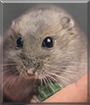 Dearest Boris, you are absolutely adorable! What a precious little Dwarf Hamster you are! Your grey fur looks so soft, and you have the sweetest face with those lovely big dark eyes. You're so cute settled in your dear person's hand in that great photo. How wonderful that you trust him/her enough to sit there now, and get your photo taken in exchange for a treat!