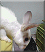 You are a busy bunny, too- hiding, exploring shopping baskets, eating plants, and receiving petting! You sometimes enjoy a treat of cabbage or cucumber. You are very smart and very sweet!