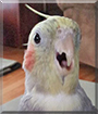 Dearest Baby Bird, you are adorable! What a beautiful Cockatiel you are, so pretty with those colorful feathers and that sweet face as a grown-up Baby Bird, and absolutely precious as a tiny hatchling Baby Bird in your dear person's hand, not much bigger than that egg! You were pulled for hand-feeding and became socialized, soon expertly begging for your formula and then making sweet chirping noises and flapping your wings as you fed.