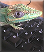 What a beautiful, most photogenic Cuban Knight Anole lizard you are, Creature! Your jade green coloring is gorgeous!!! And oh! That face, your expressions are priceless!:D And personality wise you've got it all going on...a little bit dependent, but fine on your own; gentle and chill but don't mess with me when I'm "basking!":D Have to admit though, I never heard of a lizard who was permitted free roam, able to sleep at night uncaged! How neat is that!