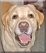 Dearest Reno, you are adorable! What a delightful smile you have on your face there! You are a terrific Labrador Retriever fellow, really special to your dear family. You make them smile with your antics and energy. You know many tricks, and you love attention. You and they all love each other very much, don't you. What a wonderful love-filled home you share!