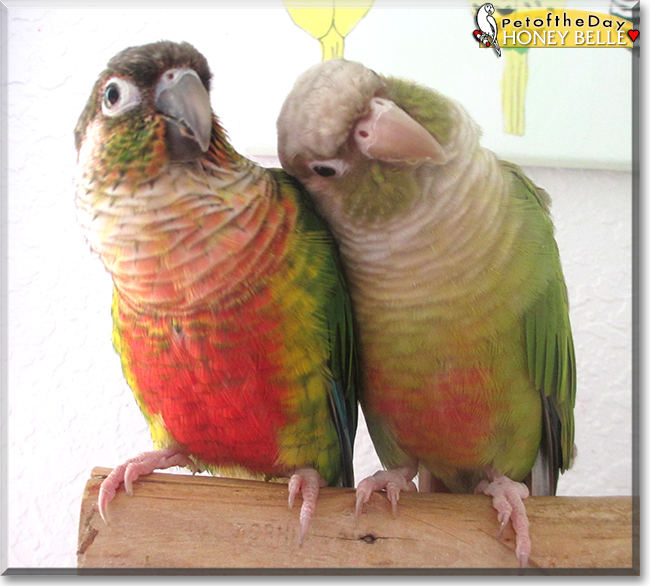Thanks for the BIG smiles, Honey! Meeting you and Pressie, seeing your heart-melting photos has truly brightened my dark and dreary day! I hope you're enjoying a very special day of celebration...perched on your mom's shoulder, eating those dots off of her face, lol; playing and cuddling with Pressie; munching on yummy seed; being loved and pampered to pieces! Lots of love, cuddles and kisses to you, beautiful Honey, our very special and most deserving Pet of the Day, EVERY day! Love to beautiful Pressie, too!:love::love::love: