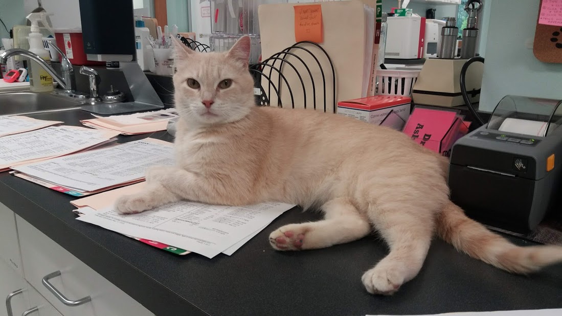 As usual, Creampuff, the hospital cat, will help wherever she can.