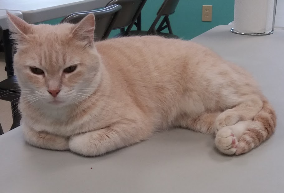Today, Creampuff hung out in our breakroom, waiting for somebody to have a yummy lunch!:D