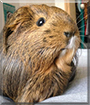 Dearest GingerSnap, you are beautiful indeed! What a gorgeous Silky Guinea Pig you are, with that pretty-colored coat and that sweet face with those lovely dark eyes and the white mark under your nose. Thank you for sharing those great photos with us! It's so nice to see you cuddled up with your dear sister Cinnabon. You're quite the gorgeous model. You do know how to work the camera, don't you! You have the most delightful personality and are very curious about the world. You're shy with strangers, but you are good close friends with your dear person. You and he/she and Cinnabon all love each other very much, don't you. What a wonderful love-filled home you share!