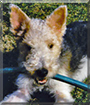 Dearest Nikki, what a beautiful Wire-Haired Fox Terrier you are! You're so pretty with that colorful, curly fur and that sweet face with the lovely big eyes. You have the most delightful personality, too. You are full of energy and make your dear people smile with your antics. You have a mind of your own and can be very sweet and also very demanding. How nice that you have your very own raft! You and your dear people all love each other very much, don't you. What a wonderful love-filled home you share!