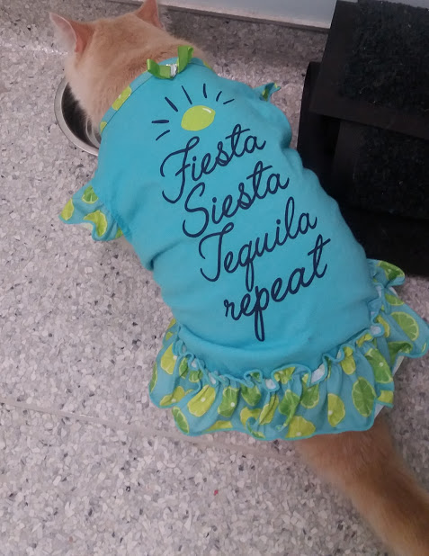 She sported two creations by the famous paws of Giorgio Purrmani.