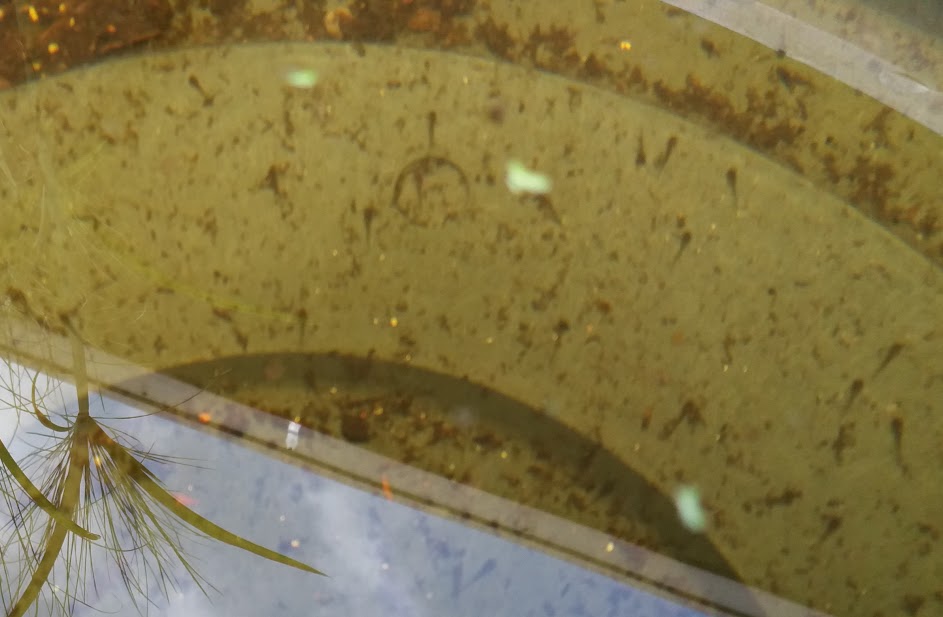 When I looked at my small water garden the other day, I noticed dozens of tadpoles among the plants. Most likely, they come from the tree frogs that are all around my house. So much for changing the water!