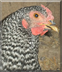 Dearest Henny, you are so very pretty, indeed! What a beautiful Dominique Chicken you are, with those gorgeous colors and that sweet face. And what a delightful story your dear person has to tell! You are one of a flock, and your breed was chosen in honor/memory of your person's grandmother and her flock of Dominique chickens. He/she and you all love each other very much, don't you. What a wonderful love-filled home you share!
