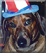 Aww!!! What a handsome, pawsitively precious Doxie boy you are, Oscar, and looking so patriotic, all decked out in your July 4th gear, best Uncle Sam hat ever, hehe!:cool: What a wonderful day it was, the day your family opened up their home and hearts to one EXTRA special boy!