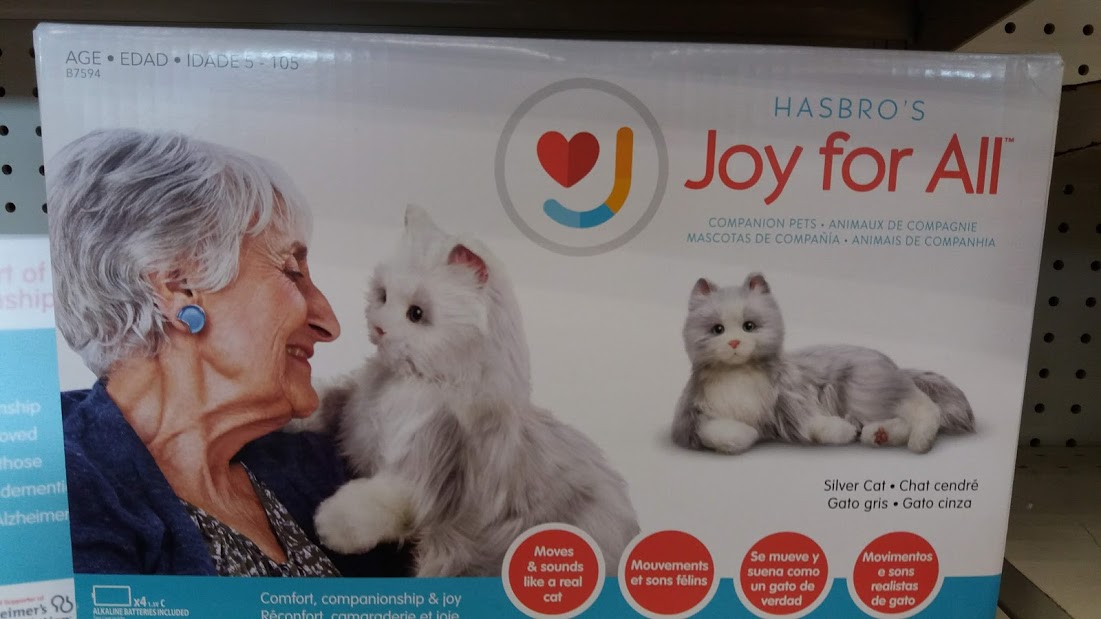 I’ve seen these on the internet. They’re mostly geared for seniors with dementia or those in a nursing home, where they wouldn’t be able to have a real cat. Makes sense to me!