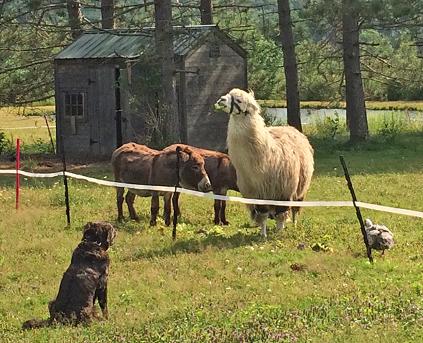 Here's Dusky pup, with Kritter (the wazilla), and Hamby and Sparkles the mini donkeys