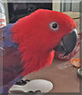Dearest Venus, you are stunning! What an utterly gorgeous Solomon Island Eclectus you are. Your feathers have the most brilliant colors, and you have the sweetest face with what looks like a big grin. You have the most delightful personality, too. You were the hit of the party when your dear people took you along to visit and have dinner with their parents. You became Grandma's BFF quickly, and you certainly enjoyed the meal, throwing it all around! You and all your family members had a great time. You all love each other very much, don't you. What a wonderful love-filled home you share!